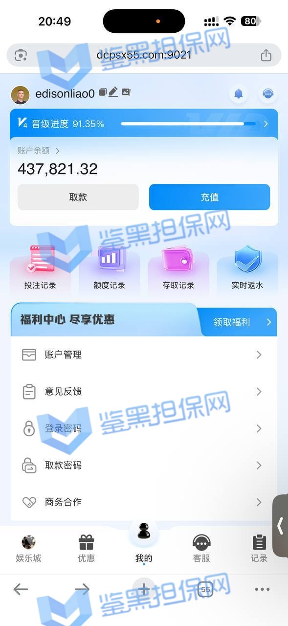 2、此会员反馈都是投注百家乐游戏,遇到好路子敢投敢冲,账户余额盈利接近44万,以套利说辞冻结账号,直接黑款。