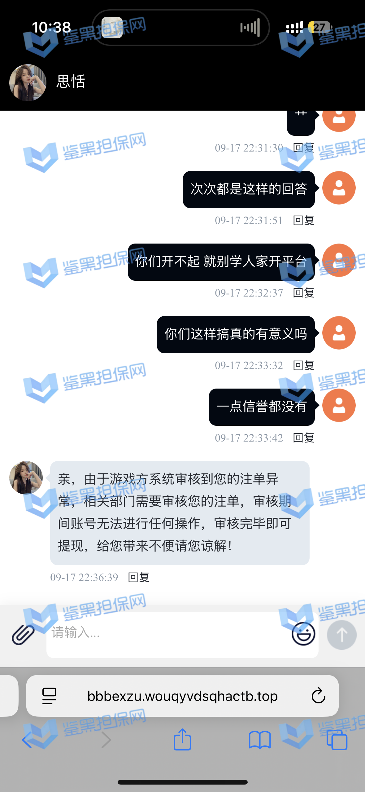 4.用户提交维权需为本人提交,若代替让人发布维权鉴黑担保网将拒绝受理;